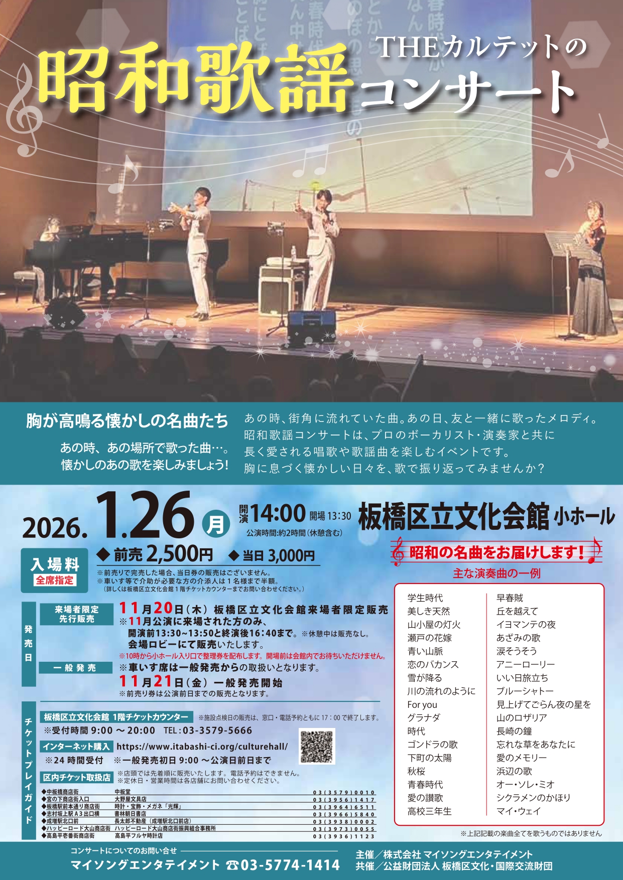 THEカルテットの昭和歌謡コンサート- 2026年1月26日(月)13時30分開場/14時00分開演
