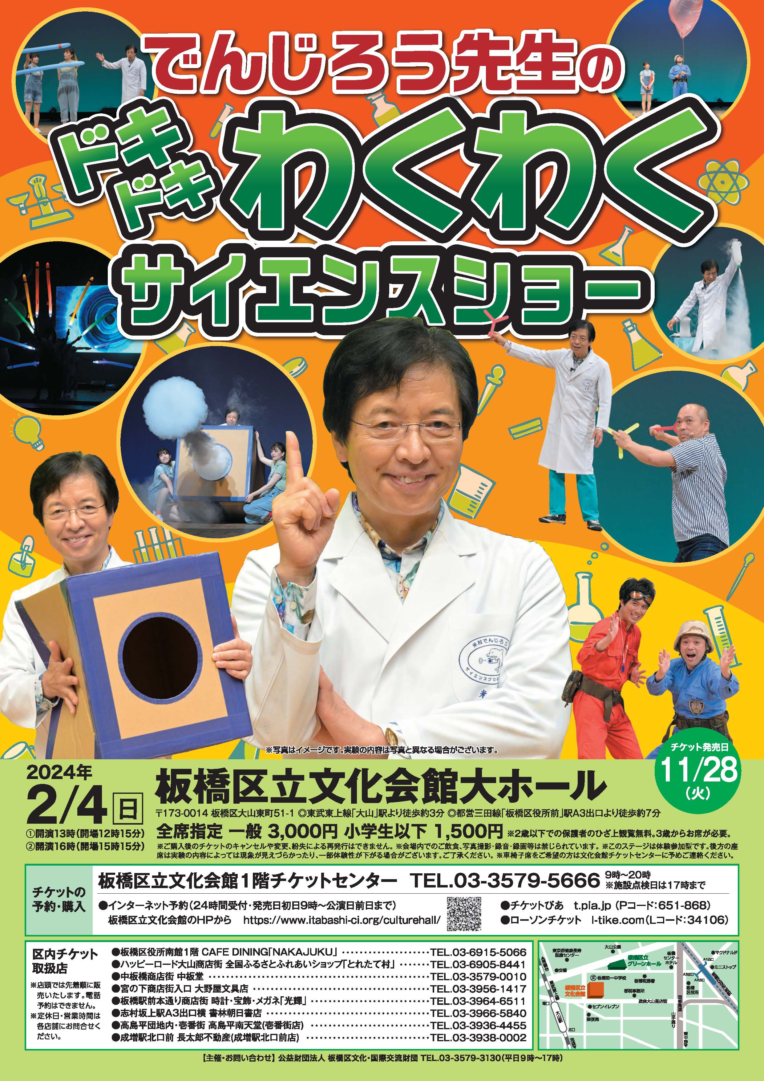 2月4日(日)板橋区立文化会館大ホールで予定されておりました、「でんじろう先生のドキドキわくわくサイエンスショー」の公演は、