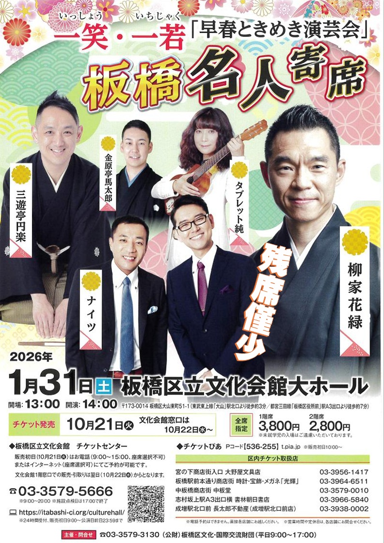 【残席僅少】 板橋名人寄席 一笑・一若「早春ときめき演芸会」