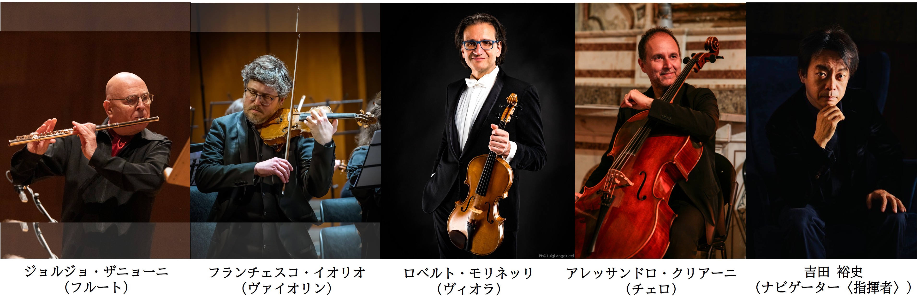 | 出演・講師 | ジョルジョ・ザニョーニ(フルート) フランチェスコ・イオリオ(ヴァイオリン) ロベルト・モリネッリ(ヴィオラ) アレッサンドロ・クリアーニ(チェロ) 吉田 裕史(ナビゲーター) |