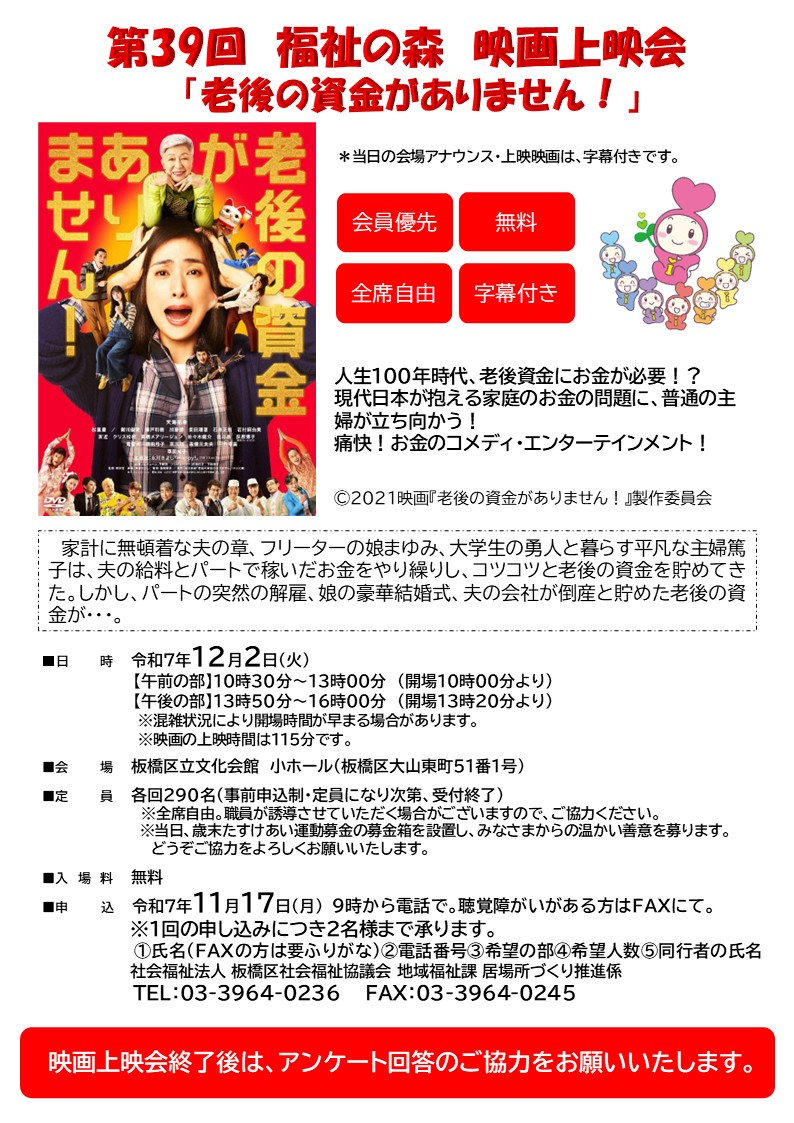 第39回福祉の森映画上映会「老後の資金がありません!」