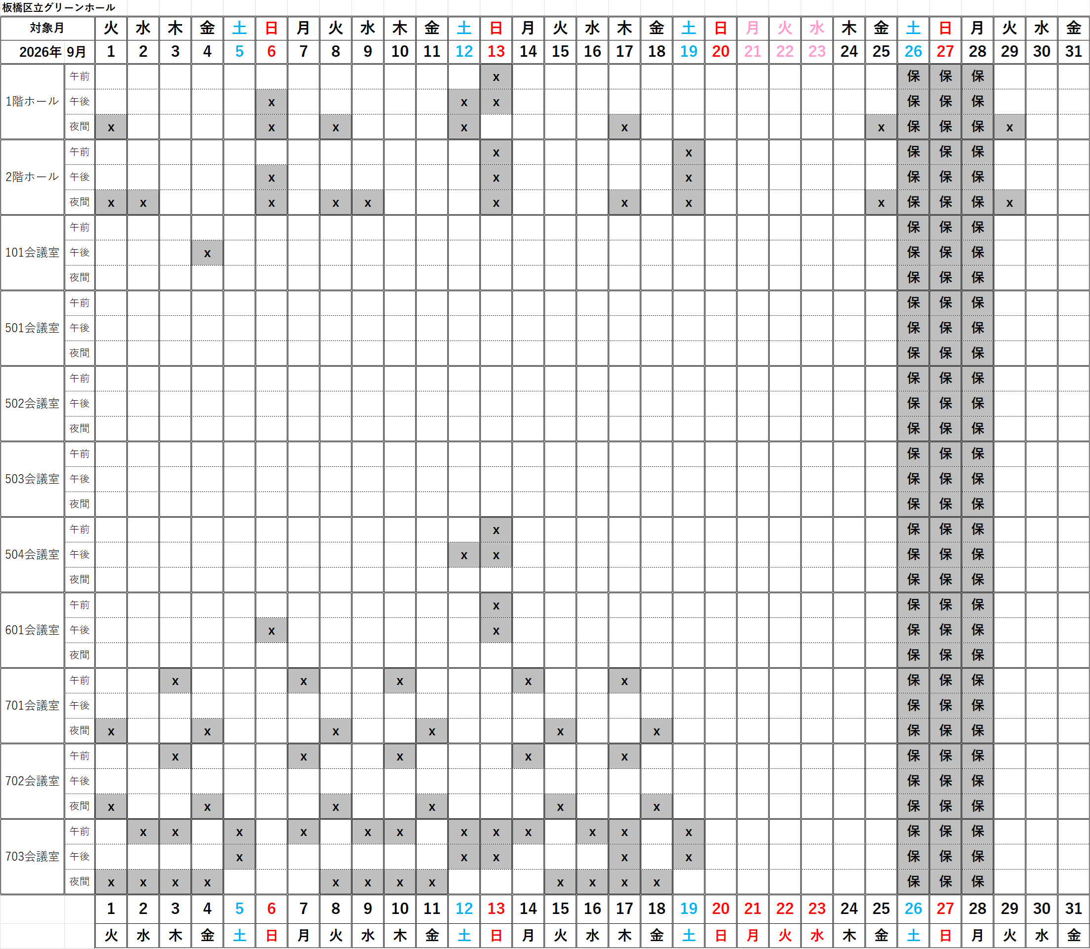 [グリーンホール・利用できない日]