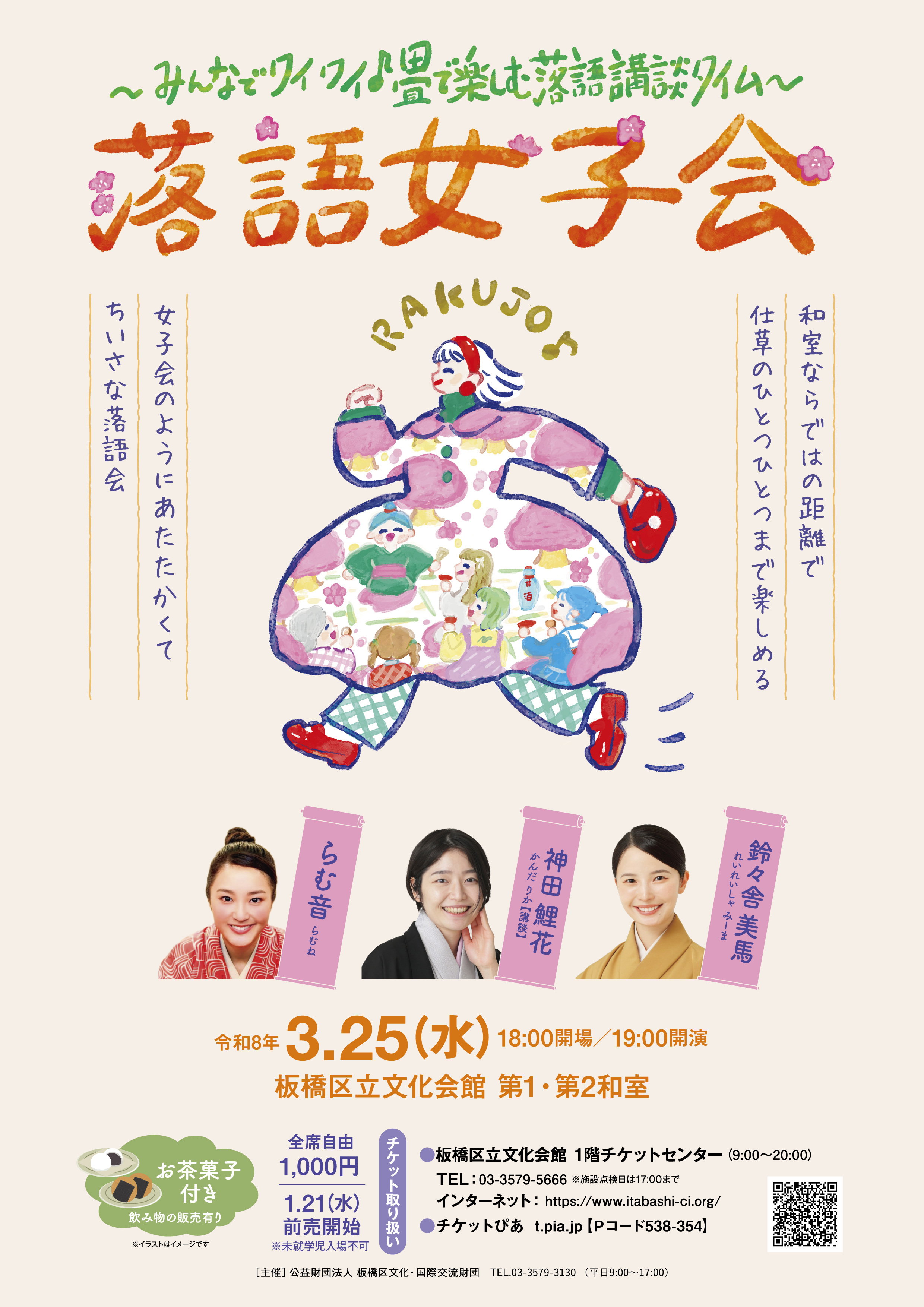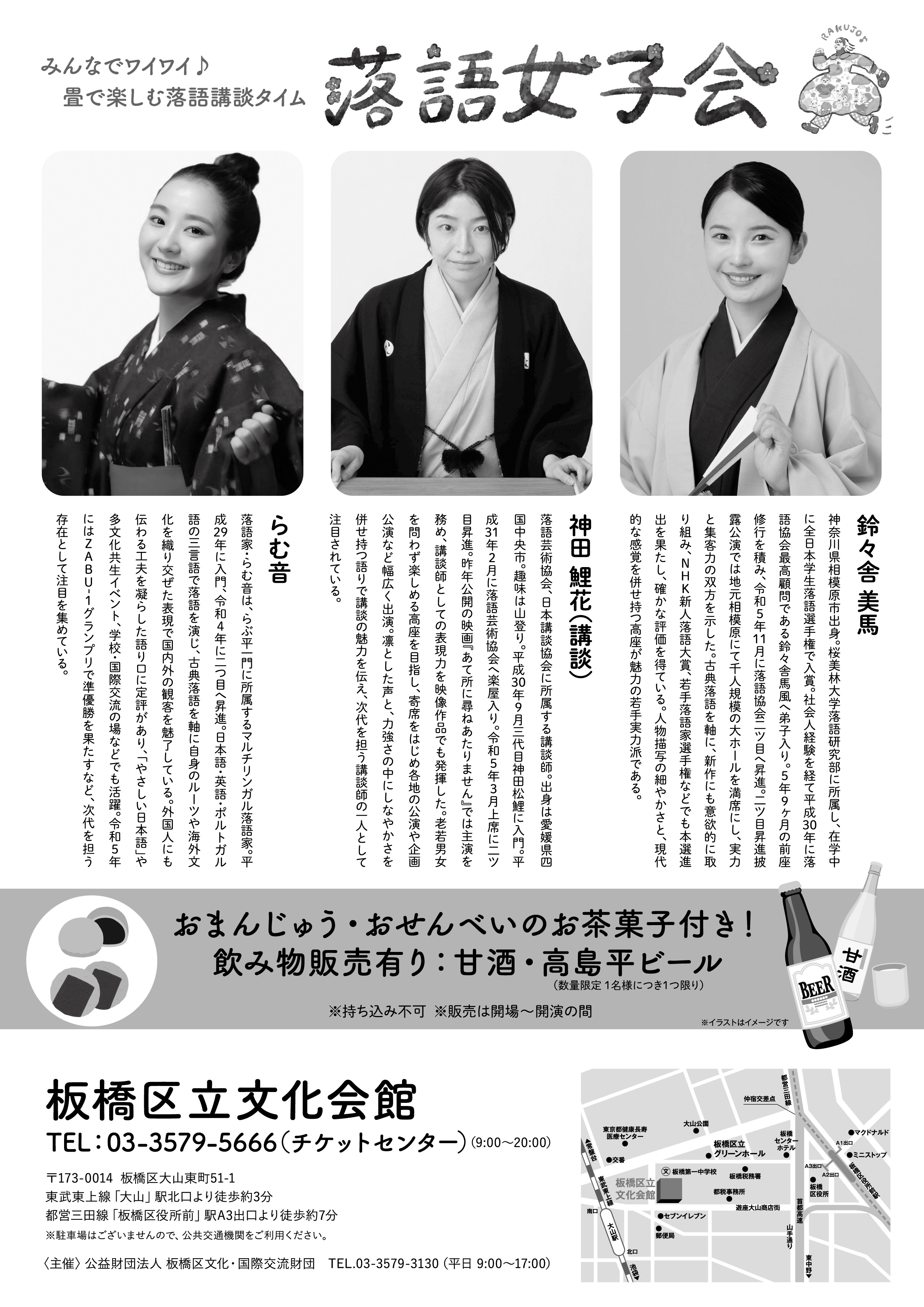| 出演・講師 | 鈴々舎美馬・らむ音・神田鯉花(講談) ※順不同。出演順ではありません。 |