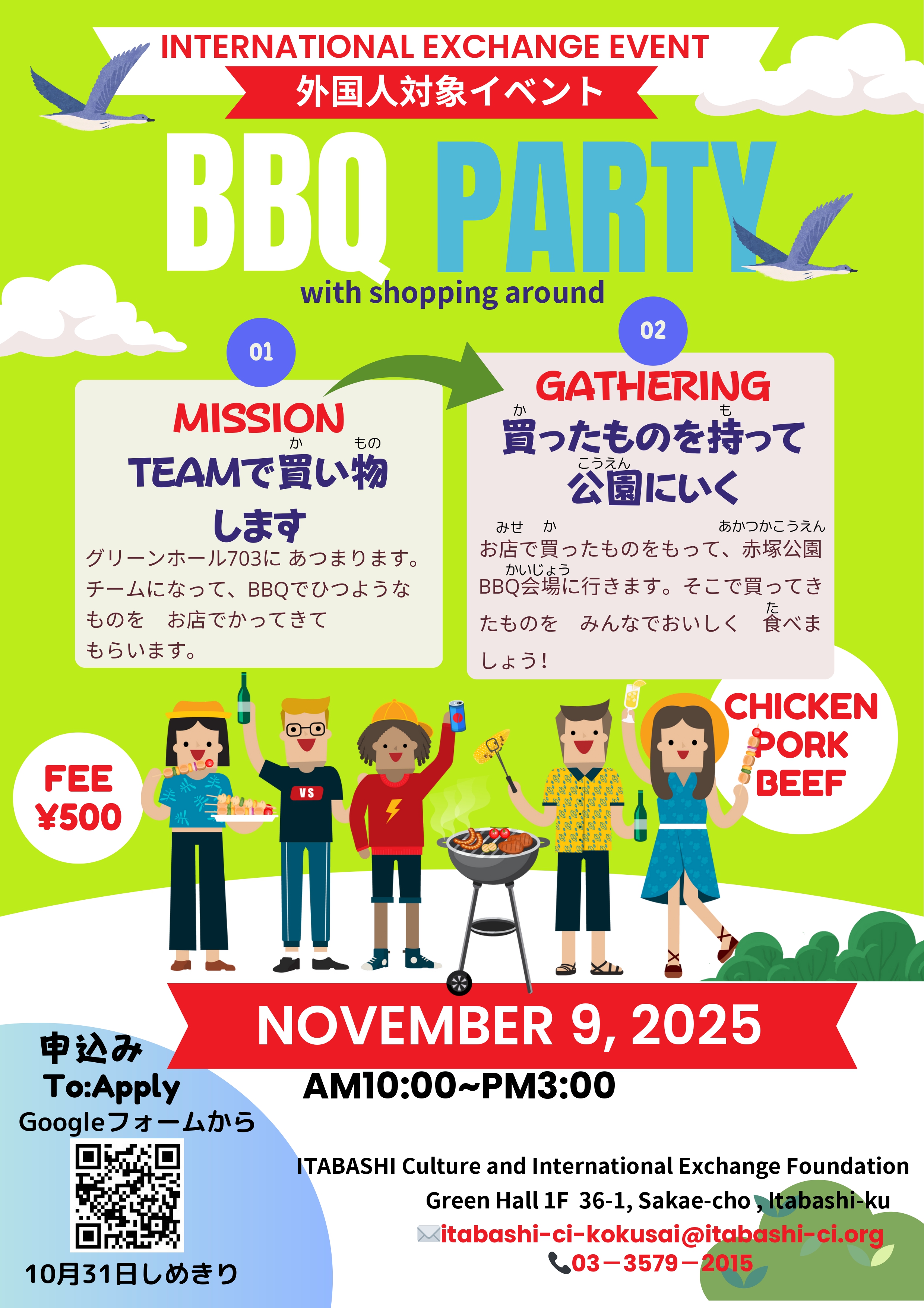 - 公益財団法人板橋区文化・国際交流財団 国際交流係TEL: 03-3579-2015 Email: itabashi-ci-kokusai@itabashi-ci.org