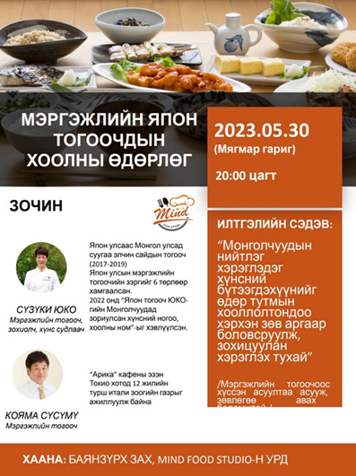 モンゴルのウランバートル市で、5月30日(火曜日)に【日本人プロ料理人によるフード・イベント】が開催されました。このイベントの開催に携わった板橋区内で飲食店を経営されているcafe arica店主の小山さんから当日のイベント報告を送って頂きましたので今回ご紹介します。